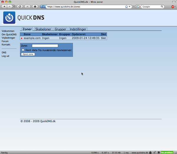 For at få adgang til at oprette din zone (domæne) på QuickDNS skal du have en bruger på QuickDNS og være logget ind med denne.